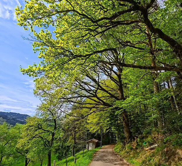 Bevor der Wald beginnt, kommt man an der Ecce-Homo-Kapelle vorbei mit der Figur des mit Dornen gekrönten Christus, geschaffen 1892 durch den Freiburger Berthold Knittel, erreicht dann den Barfußpfad mit einer Rastmöglichkeit, weiter geht es an der Balbinen-Kapelle vorbei zum Pirschweg bis zur Wassertretanlage. Hier ist auch Platz für eine Pause. Nun geht es am Waldrand entlang mit dem Blick über das Tal, an der Ölberggrotte vorbei, zurück zum Ausgangspunkt.