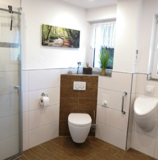 Modernes barrierefreies Bad mit WC und Raindance-Dusche